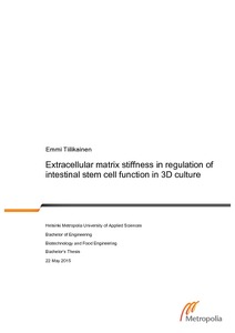 Tämä insinöörityö toteutettiin Biotekniikan Instituutissa Pekka Katajiston tutkimusryhmässä Helsingin Yliopistolla. Työn tarkoituksena oli tutkia, miten soluväliaineen jäykkyys vaikuttaa ohutsuolen kantasolujen toimintaan kasvatettaessa niitä kolmiulotteisessa matriisissa.
