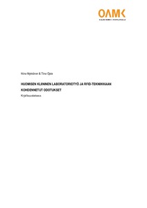 Opinnäytetyön toimeksiantaja on Oulun ammattikorkeakoulu. Työn tarkoituksena oli koota tietoa RFID-tekniikan käytöstä kliinisissä laboratorioissa terveysalalla sekä tekniikan käyttöönoton mahdollisista hyödyistä ja haitoista. Tavoitteena oli, että opinnäytetyön sisältöä voidaan myöhemmin hyödyntää alan koulutuksessa ja sen suunnittelussa, sekä alan muutosten ennakoinnissa. Opinnäytetyön tutkimusmetodina käytettiin kirjallisuuskatsausta. Tiedonhankinta suoritettiin Medic, Ebsco ja PubMed -tietokannoista.