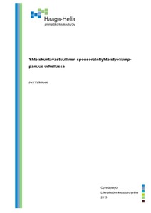 Opinnäytetyön tarkoituksena oli tutkia yhteiskuntavastuullista sponsorointiyhteistyökumppanuutta. Aihe on ajankohtainen, koska yhteiskuntavastuullinen toiminta on yrityksille nykypäivänä tärkeä arvo ja se vaikuttaa yritysten päätöksentekoon. Yhteiskuntavastuullinen sponsorointiyhteistyökumppanuudella on positiivisia vaikutuksia paitsi yritysten maine- ja brändihallinnalle sekä yhteiskunnalle.