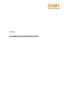 Tässä opinnäytetyössä tutustuttiin polyuretaaniin materiaalina ja polyuretaanin valmistustekniikkoihin, polyureraanituotteiden kierrätykseen ja loppukäsittelyyn sekä polyuretaanisien osien soveltuvuudesta polannekoneeseen. Opinnäytetyössä tutustuttiin lisäksi tuotteen suunnitteluun, mallintamiseen ja valmistuskuvien tekemiseen sekä polyuretaanituotteen valmistuksessa käytettäviin muotteihin ja muoteissa käytettäviin teknisiin ratkaisuihin.