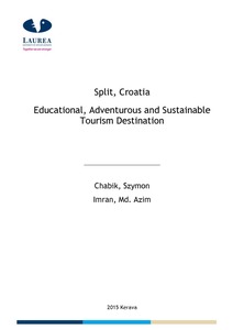 This format of audio-visual thesis is not the first of its kind, as previously similar kinds of theses were made although the content were different. But this thesis work is an example of LbD- Learning by Developing method. This audio-visual format of the thesis will bring a lot of knowledge to new students. Students will be able to know how this kind of work is done and what kind of materials are used to create this kind of work. The aim of the thesis was to create an audio-visual document and that goal was reached successfully; the outcome is a 22-minute-long video. Split does not have any similar document in videoformat. The video is available on YouTube under the name: "Split, Croatia - Educational, Adventurous and Sustainable Tourism Destination". Tämän opinnäytetyön tavoitteena on luoda audiovisuaalinen dokumentti, jossa tutkitaan Kroatiassa sijaitsevaa matkakohdetta Split. Kohdetta tutkitaan kolmesta eri näkökulmata. Splitin tarjonta opintomatka kohteena ja seikkailumatkojen kohteena, kuin myös mitä kestävän matkailun elementtejä on havaittavissa omin silmin paikanpäällä käydessä. Matka järjestettiin keväällä 2014 huhtikuussa ja se oli täysin opiskelioiden kehittämä. Matkan tarkoituksena oli luoda opintomatka paketti ja kokeilla sen toimivuus oikeassa tilanteessa. Kyseisenä vuonna äänestyksen voitti Split. Tämä oli erinomainen mahdollisuus liittyä mukaan reissuun ja sen myötä päästä kuvaamaan kaupungin lisäksi keskustelu joka käytiin Aspiran Korkeakoulussa Kroatiassa. Keskusteluun kuului muun muassa kokemustenvaihto ja opetussuunitelmien sekä menetelmien erilaisuudet Suomen ja Kroatian välillä.