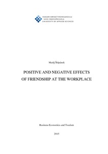Tämä opinnäytetyö tutkii ystävyyttä työpaikalla ja sen vaikutuksia tuottavuuteen, työtunnelmaan ja työtyytyväisyyteen sekä negatiivisia vaikutuksia ja ratkaisuja niiden poistamiseksi. Aiheessa yhdistyvät kauppatieteiden ja psykologian tutkimus ja näkökulmat. Ystävyys on vapaaehtoinen molemminpuolisesti hyödyllinen kytkös. Sen hyödyt ja kustannukset muuttuvat aikanaan. Ystävyyden voima mittaa kytköksien syvyyttä ja ominaisuuksia, ja sillä voi olla merkittävä vaikutus työpaikalla. Opinnäytetyön teoreettinen osa keskittyy ystävyyden perustamiseen, hyötyihin, negatiivisiin vaikutuksiin, ystävyyden hoitamiseen, ristiriitoihin ja käyttöön. Hyödyt ja negatiiviset vaikutukset selittävät, minkälaisia vaikutuksia ystävyydellä on työilmapiiriin ja työtyytyväisyyteen työntekijän näkökulmasta. Ystävyyden hoito ja mahdolliset ristiriidat selittävät, millä kustannuksella säilytetään ystävyys. Lopuksi käsitellään ystävyyden mahdollisia käyttötapoja johtamisvälineenä. Opinnäytetyön empiirinen osa koostuu tutkimuksesta, joka on tehty neljässä eri maassa, demonstroidakseen erinäisiä asenteita ystävyyteen ja ihmistenvälisiin suhteisiin. Kuusi haastattelua osoittaa erilaisia työkulttuureja sekä asenteita ystävyyteen työpaikalla. Lopussa Hofsteden mallia on käytetty selittämään kytköksiä ja kulttuurin vaikutuksia tuloksiin. Haastatellut henkilöt kuudesta yrityksestä kuvasivat ystävyyden vaikutuksista työpaikalla, sekä positiivisia että negatiivisia. Suomessa ”Management & Leadership” – malli on tuttu ja hierarkkinen etäisyys on pieni, mutta Tšekissä tai Slovakiassa hierarkia on melko suuri. Myöskin asenne ystävyyteen on erilainen, esimerkiksi Italiassa ystävyys työpaikalla koetaan aika negatiivisesti.