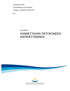 Tämän opinnäytetyön tavoitteena oli selvittää, miten kannettavia tietokoneita kierrätetään Suomessa. Haastattelukysymyksiä lähetettiin sähköpostin välityksellä maaliskuussa 2015 kymmenelle kierrätyksestä vastaaville tahoille ympäri Suomea. Näistä selvisi, että kaikki tietokoneen materiaalit erotellaan toisistaan, puhdistetaan ja tämän jälkeen jatkojalostetaan puhtaaksi materiaaliksi tai uudeksi tuotteeksi. Suomessa kannettavat tietokoneet pystytään hyödyntämään lähes 100 prosenttisesti.