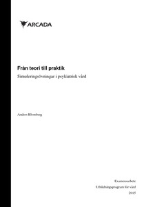 Utbildning av vårdare inom psykiatri med hjälp av simuleringsövningar har använts marginellt fastän simulering inom vårdlära har funnits redan från 1960-talet. Det fanns redan i början belägg för att psykiatrin skulle vara det vårdområde som skulle ha utvecklats först inom simulering eftersom simulering är en inlärningsmetod för att tryggt kunna öva sådant som annars är omöjligt, eller etiskt oacceptabelt. Med simulering försöker man återskapa en realistisk bild av en händelse eller ett händelseförlopp genom vilken man sedan skall lära sig något, öva sitt eget agerande, eller genomgå en upplevelse för att lättare vänja sig. Simulering har blivit allt viktigare för att öka de praktiska färdigheterna hos nyutexaminerade vårdare. I detta examensarbete utfördes det en litteraturöversikt för att ta fram den kunskap som finns inom området från tidigare. I detta arbete presenterades forskning om simuleringsövningar som gjorts inom psykiatri eller undervisning för vårdare som arbetar inom psykiatri. Därtill presenterades nuläget vid Arcada i form av en granskning utav studieplanerna för diverse kurser som hade psykiatri som ett delområde. Utifrån detta gavs en eventuell rekommendation om passande övnings-uppgifter för att utveckla undervisningen i psykiatri vid Arcada. Det är av vikt att öka kunnandet inom simulering av psykiatrisk vårdlära. Övningarna som är uppgjorda för detta arbete kan användas som grund för vidare utveckling. I min forskning har jag kommit fram till att det behövs simuleringsövningar inom utbildning av vårdare och att dessa övningar borde vara så realistiska som möjligt. Training of nurses in psychiatry with simulation exercises have been marginally although simulation in healthcare learning has existed since the 1960s. There was already in early time evidence that psychiatry would be the care area that would have been developed first in simulation, because simulation is a learning method in order to safely practice the things that are otherwise impossible or ethically unacceptable. With the simulation are trying to recreate a realistic picture of an event or sequence of events by which you then must learn, practice their own actions or undergo the experience to make it easier to get used to. Simulation has become increasingly important to increase the practical skills out of graduate nurses. In this thesis was performed a literature search in order to develop the knowledge available in the area from before. This work was presented research on simulation exercises undertaken in psychiatry or during playback for careers who work in psychiatry. In addition, presented the current situation at the Arcada in the form of an examination out of curriculum for various courses that had psychiatry as a branch, and that it was based on a recommendation about suitable exercises for developing the teaching of psychiatry at Arcada. It is important to increase the expertise in the simulation of psychiatric care to learn. The exercises that are made up for this work can be used as a basis for further development. In my research, I have concluded that the need for simulation exercises in the education of nurses and that they should be as realistic as possible.
