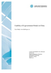 The purpose of this thesis was to evaluate the usability of e-government portals in China. This study applies a qualitative research method. Based on the literature review, the researcher chose the heuristic evaluation method to evaluate the usability of an e-government portal. The e-government portal of the Hubei province was selected as the research object to collect data. After the evaluation, the usability issues are listed and some remmondations for the future construction of e-government portals are proposed.