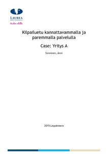 Kilpailuetu kannattavammalla ja paremmalla palvelulla - Case: Yritys A