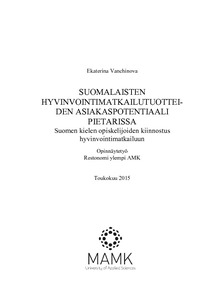 Suomesta kiinnostuneiden ryhmässä. Työn tarkoituksena oli selvittää, mikä on suomalaisen hyvinvointimatkailuyrityksen Pietarissa asuvan ja Suomesta kiinnostuneen potentiaalisen asiakkaan maksuvalmius tällä hetkellä, mitkä ovat hänen mieltymyksensä hyvinvointituotteiden suhteen, sekä mitkä ovat asiakkaan mielestä tärkeät kanavat, joiden kautta hän etsisi tietoa matkailualan yrityksistä ja niiden tuotteista.