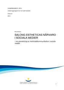 Mitt examensarbete är av funktionell natur; arbetet är inriktat på att hämta nytta till min arbetsplats, Axxell Utbildning och närmare bestämt kosmetologutbildningen samt övningssalong Salong Esthetica. För företag är det mycket fördelaktigt att vara representerade på sociala medier; detta har jag tagit del av i teorin men även skådat i praktiken genom att underhålla Salong Estheticas egen Facebooksida. I have chosen to study Salong Esthetica, the beauty salon at the vocational school Axxell Utbildning in Pargas. At Salong Esthetica the beautician students do their practical training. The purpose of my study is to learn more about how to successfully do marketing for a company in social media. What is relevant in marketing communication to customers in social media environment? Moreover, I want to study how to the marketing for the training salon, Salong Estehtica in social media. The beautician education needs more visibility; to attract more students and more potential customers to our training salon.
