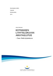 Opinnäytetyöni käsittelee kotimaisen lyhytelokuvan aikataulutusta. Tekstissäni keskityn tuotannon kuvausjakson aikataulutukseen sekä seikkoihin, jotka vaikuttavat aikataulutuksen lähtökohtiin ja projektin lopullisen aikataulun rakentamiseen taloudelliseksi ja käytännölliseksi. Syvennyn enemmän asioihin, jotka tuotannon ajanhallintaa tehdessä tulee ottaa huomioon kuin tekniseen aikatauluttamiseen. Tavoitteenani on tehdä listaus asioista, jotka on hyvä muistaa tuotannon aikatauluja luodessa.
