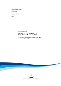 Tämä opinnäytetyö käsittelee Word of Mouth ja electronic Word of Mouth –viestintää. Word of Mouthin tehokkuus perinteiseen markkinointiin on jo pitkään ollut yritysten ja tutkijoiden tiedossa. Internetin käytön yleistyminen avaa yrityksille uusia mahdollisuuksia edulliseen ja tehokkaaseen markkinointiin. Toisaalta se aiheuttaa yrityksille myös uusia uhkia mahdollisten negatiivisten viestien levitessä arvaamattomasti ja hallitsemattomasti verkossa.