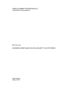 Tässä opinnäytetyössä perehdytään asunto-osakeyhtiötä koskevaan sääntelyyn, asunto-osakeyhtiölakiin. Työn tavoitteena oli selvittää asunnon omistajalle taloyhtiössä kuuluvat velvollisuudet ja kyseisten velvollisuuksien laiminlyönnistä koituvat seuraamukset.