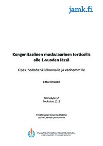 Opinnäytetyön tarkoituksena oli luoda opas hoitohenkilökunnalle ja kotiohje vanhemmille kongenitaalisen muskulaarisen torticolliksen (KMT) hoitamiseksi. Oppaat on tarkoitettu hoitohenkilökunnalle käytännön työhön ja jaettavaksi vanhemmille kotiin. Opas antaa tietoa hoidon yhdistämisestä päivittäisiin toimiin, tämän vuoksi vanhempien ohjeistaminen on tärkeää. Opas pohjautuu teoriatietoon. Yhteistyökumppanina toimi Tampereen kaupungin avokuntoutuksen lasten fysioterapeutit Lasten ja nuorten poliklinikalla.