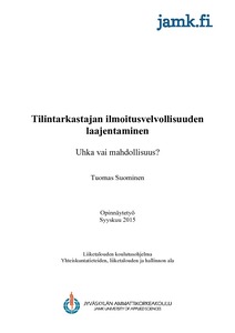 Opinnäytetyön tarkoituksena oli selvittää, miten eri toimijat suhtautuivat tilintarkastajan ilmoitusvelvollisuuden laajentamiseen. Tutkimusaineistona käytettiin työ- ja elinkeinoministeriölle annettuja lausuntoja luonnoksiin tilintarkastuslain muuttamisesta. Tutkimustehtävänä oli selvittää, millaisia puoltavia ja vastustavia argumentteja esitettiin sekä millaisia lakiehdotuksen korjausehdotuksia annettiin. Opinnäytetyön toimeksiantajana oli Tilintarkastus Riuttanen Oy.