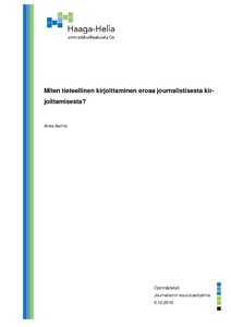 Opinnäytetyöni tavoitteena on selvittää, miten tieteellinen ja journalistinen kirjoittaminen eroavat toisistaan. Vertailen lajeja toisiinsa käytännön kirjoittajakokemukseni ja lähdekirjallisuuden pohjalta.