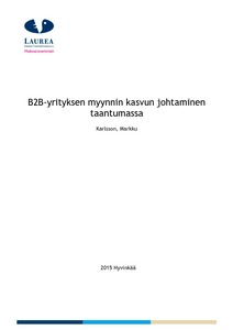 Tämän opinnäytetyön toimeksiantona oli selvittää, miten myynnin johtaminen ja sen kehittäminen on vaikuttanut B2B-sektorilla toimivien yritysten kasvuun. Työn tavoitteena oli erityisesti tarkastella vallitsevan heikon taloustilanteen vaikutusta yritysten toimintaan, myyntiin ja tuloksiin. Opinnäytetyön tilaajana toimi liikkeenjohdon muutosvalmennukseen erikoistunut suomalainen yritys.