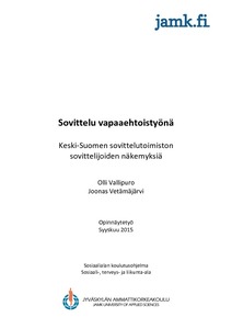 Tämän opinnäytetyön toimeksiantaja on Keski-Suomen sovittelutoimisto, joka on paikallisesti järjestetty Jyväskylän kaupungin organisaation alaisuudessa. Opinnäytetyön tavoitteena oli kartoittaa Keski-Suomen sovittelutoimiston vapaaehtoisten sovittelijoiden näkemyksiä vapaaehtoistyön taustalla olevista motiiveista, sovittelun yhteiskunnallisesta merkityksestä sekä Keski-Suomen sovittelutoimiston henkilökunnan työskentelystä ja sen kehittämiskohdista. Tavoitteena oli myös luoda pysyvä kyselytyökalu Keski-Suomen sovittelutoimiston käyttöön tulevan työskentelyn suunnittelun helpottamiseksi.