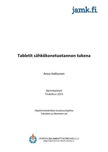 Opinnäytetyön aiheena oli ABB Oy:ltä saatu toimeksianto selvittää, miten tabletteja voisi käyttää sähkökonetuotannon tukena ja minkälaisilla laitteilla se olisi mahdollista sekä selvittää, miksi olisi järkevää siirtyä käyttämään SAP Fiori –käyttöliittymää.
