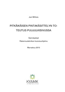 Insinöörityössä perehdyttiin puujulkisivujen pintakäsittelyissä esiintyviin ongelmiin ja selvitettiin niiden syntymiseen johtaneita syitä. Pintakäsittelyissä esiintyvät vauriot ovat usein esteettisiä ja julkisivun kosteusteknistätoimivuutta heikentäviä. Pintakäsittelyn vaurioitumismekanismien ymmärtäminen edesauttaa ja mahdollistaa oikea-aikaisten ja tarkoituksenmukaisten menetelmien valitsemisen. Oikea-aikaisilla ja tarkoituksenmukaisilla korjaus- ja huoltotoimenpiteillä voidaan vaurioin uusiutuminen ehkäistä mahdollisimman tehokkaasti. Vaurioita ehkäisemällä tilaaja kykenee saavuttamaan merkittäviä taloudellisia säästöjä pidentyneiden huoltomaalausvälien johdosta.