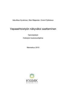 lisätä Palvelutaloyhdistys Koskenrinne ry:n vapaaehtoistyön näkyvyyttä. Kehittämistutkimuksen tavoitteina oli tehdä Koskenrinteelle Facebook-sivut ja päivittää vapaaehtoistoiminnan esite sekä aktivoida uusia vapaaehtoisia, erityisesti nuoria eri järjestöjen ja koulujen kautta.