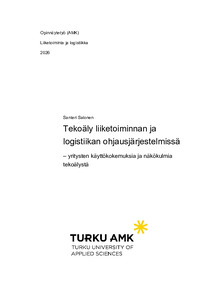(2026)Opinnäytetyön tavoite oli tehdä lukijalle tekoälyä ilmiönä liiketoiminnassa ja logistiikassa ymmärrettäväksi. Tavoitteena oli myös havainnollistaa, missä mennään Suomessa tällä hetkellä tekoälyn käytön suhteen. Tavoite oli ... -