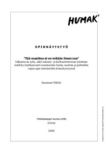 (2026)Tämän opinnäytetyön tavoitteena oli tarkastella, miten jalkautuva työ, sekä uskonto- ja kulttuuritietoinen työote vaikuttavat kulttuurisesti moninaisten lasten, nuorten ja perheiden vapaa-ajan toimintoihin sitoutumiseen. ... -