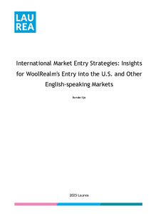 (2025)This thesis explores WoolRealm's opportunities for internationalization in the U.S. market, focusing on strategies to position the Finnish artisan brand effectively within a highly competitive landscape. The primary objective ...Avoin saatavuus / Open access / Öppen tillgång -
