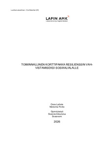 (2026)Opinnäytetyömme tavoitteena oli tuottaa sosiaalialalle resilienssiä vahvistava toiminnallinen korttipakka, joka perustuu Martin Seligmanin PERMA-teoriaan. Toiminnallinen korttipakka kehittää työyhteisötaitoja ja tuo ... -